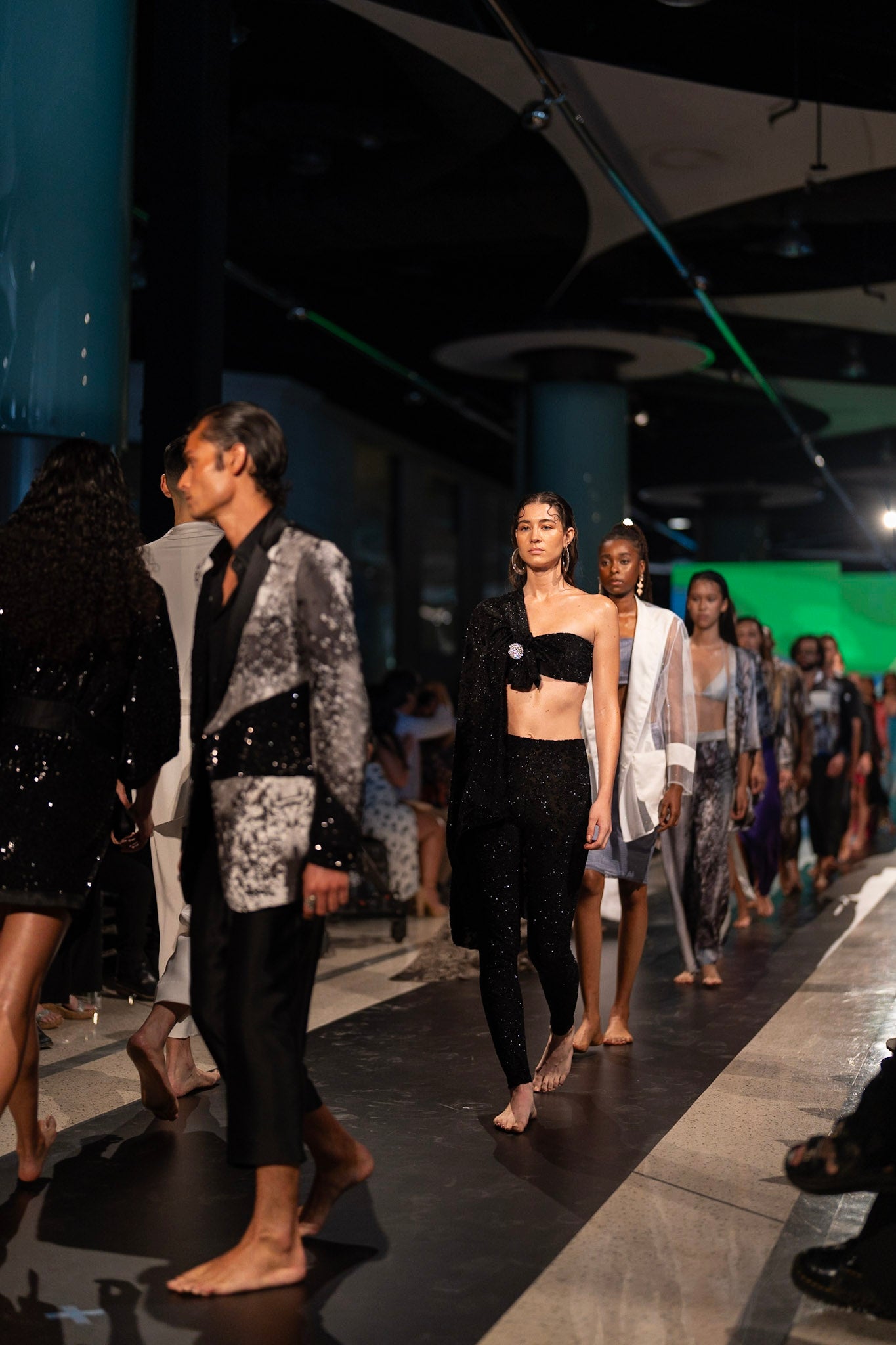 We are also huge advocates of protecting our planet and our mental health. At Kimia Arya, we consciously use fabrics and materials that are earth friendly, such as silk, which is a natural fibre and is biodegradable, as well as Swarovski® crystals and Corozo buttons, which are nut based. In addition, we reclaim a lot of our fabrics from current and previous seasons in order to maximize the longevity of our fabrics and minimize our carbon footprint on our planet. During the lockdown, Kimia Arya began a daily live show on Instagram entitled "The Daily Check-in LIVE" where she spoke with members of her community from all over the world, every day, to check-in on their mental health. She also kept her team employed and hard at work by creating PPE masks for health care and essential workers all across the nation, in addition to creating their own fashion silk masks used to raise funds for @NoKidHungry and @OpportunityFund.